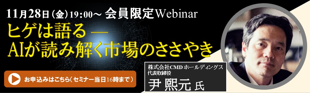 - 【11/28(金)!開催】ヒゲは語る―AIが読み解く市場のささやき 講師:尹煕元氏